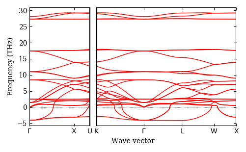 pymatgen MPRester. The phonon band structure paths are determined using SeeK-path.