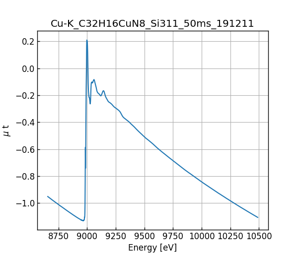 キーワード: collection - MDR XAFS DB, XAFS, SPring-8, BL14B2, Si(311), C32H16CuN8, Cu K-edge, Phthalocyanine, Copper phthalocyanine