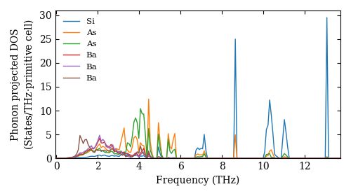 Atsushi Togo. Ab-initio phonon calculation for Ba3(SiAs2)2 / C2/c (15) / materials id 11692. http://phonondb.mtl.kyoto-u.ac.jp/