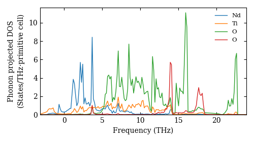 Atsushi Togo. Ab-initio phonon calculation for Nd2Ti2O7 / Fd-3m (227) / materials id 555785. http://phonondb.mtl.kyoto-u.ac.jp/