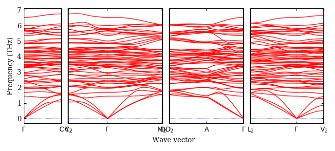 pymatgen MPRester. The phonon band structure paths are determined using SeeK-path.