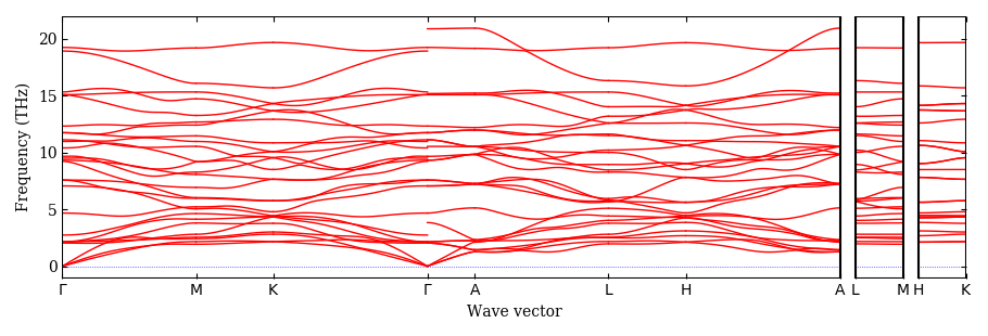 pymatgen MPRester. The phonon band structure paths are determined using SeeK-path.