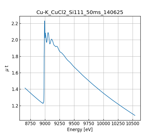 キーワード: collection - MDR XAFS DB, XAFS, SPring-8, BL14B2, Si(111), CuCl2, Cu K-edge, Chloride, Copper(II) chloride, anhydrous