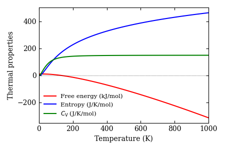 Phonon band structure, phonon DOS, thermal properties at constant volume, and phonon raw data are presented.