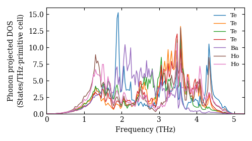 Atsushi Togo. Ab-initio phonon calculation for Ba(HoTe2)2 / Pnma (62) / materials id 17273. http://phonondb.mtl.kyoto-u.ac.jp/