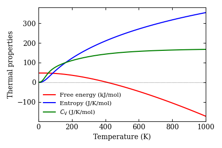 Phonon band structure, phonon DOS, thermal properties at constant volume, and phonon raw data are presented.