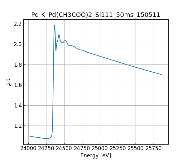 キーワード: collection - MDR XAFS DB, XAFS, SPring-8, BL14B2, Si(111), Pd(CH3COO)2, Pd K-edge, Acetate, Palladium(II) acetate