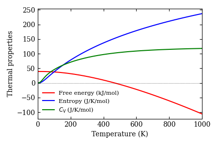 Phonon band structure, phonon DOS, thermal properties at constant volume, and phonon raw data are presented.