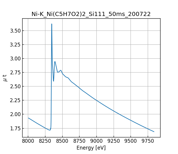 キーワード: collection - MDR XAFS DB, XAFS, SPring-8, BL14B2, Si(111), Ni(C5H7O2)2, Ni K-edge, Acetylacetonate, Nickel(II) acetylacetonate