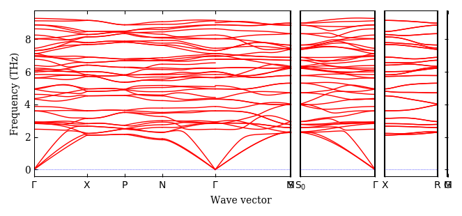 pymatgen MPRester. The phonon band structure paths are determined using SeeK-path.