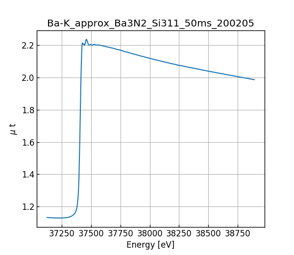 キーワード: collection - MDR XAFS DB, XAFS, SPring-8, BL14B2, Si(311), approx. Ba3N2, Ba K-edge, Nitride, Barium(II) nitride, Ba3N2