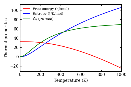 Phonon band structure, phonon DOS, thermal properties at constant volume, and phonon raw data are presented.