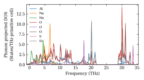 Atsushi Togo. Ab-initio phonon calculation for Na8Al6Si6SO28 / P23 (195) / materials id 41734. http://phonondb.mtl.kyoto-u.ac.jp/