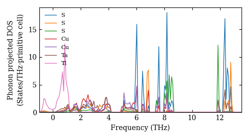 (abstract)Ab-initio phonon calculation for TaTl(CuS2)2 / Ama2 (40)