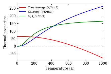 Phonon band structure, phonon DOS, thermal properties at constant volume, and phonon raw data are presented.