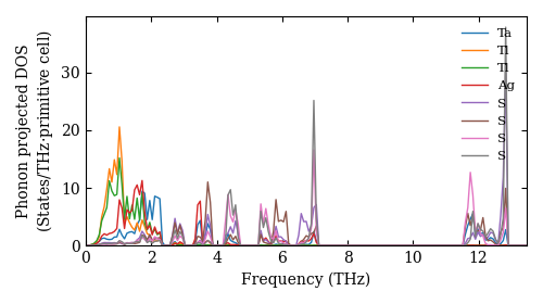 Dataset: Ab-initio phonon calculation for TaTl2AgS4 / P2_1/c (14) / materials id 558241