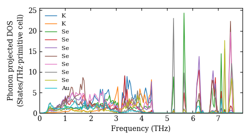 Dataset: Ab-initio phonon calculation for K3AuSe13 / P2/c (13) / materials id 28606