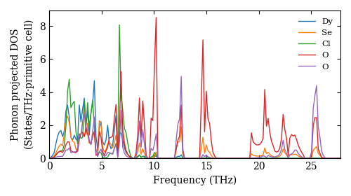 Dataset: Ab-initio phonon calculation for DySeClO3 / Pnma (62) / materials id 558257