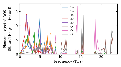 Dataset: Ab-initio phonon calculation for Zn2TeBr2O3 / Pccn (56) / materials id 558350