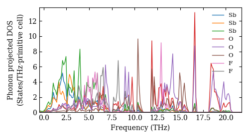 Dataset: Ab-initio phonon calculation for Sb4O5F2 / Pnma (62) / materials id 759707