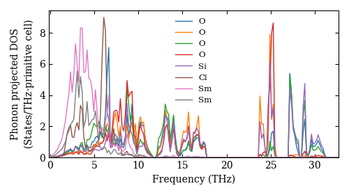 Dataset: Ab-initio phonon calculation for Sm3Si2ClO8 / Pnma (62) / materials id 23622