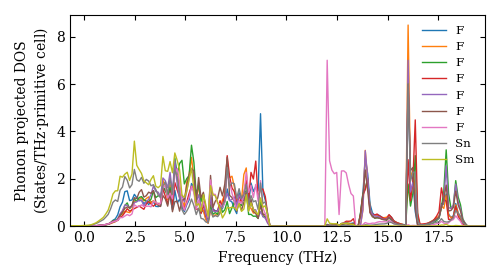 Dataset: Ab-initio phonon calculation for SmSnF7 / P2_1/c (14) / materials id 17418