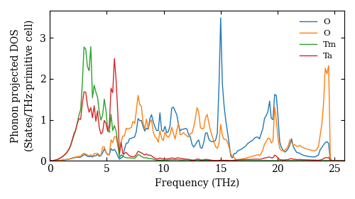 Dataset: Ab-initio phonon calculation for TmTaO4 / P2/c (13) / materials id 12933