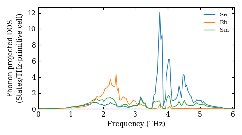 Dataset: Ab-initio phonon calculation for RbSmSe2 / R-3m (166) / materials id 10780