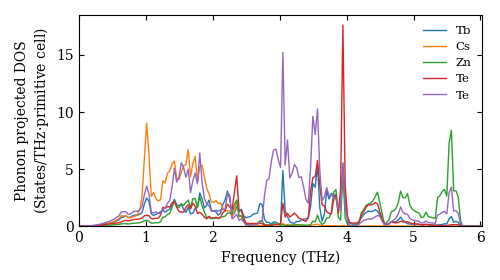 Dataset: Ab-initio phonon calculation for TbCsZnTe3 / Cmcm (63) / materials id 638078