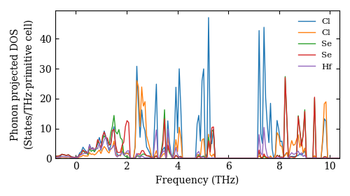 Dataset: Ab-initio phonon calculation for Hf(Se2Cl3)2 / P4_2/ncm (138) / materials id 29420