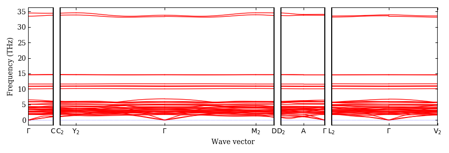 Dataset: Ab-initio phonon calculation for K2NaBP2 / C2/m (12) / materials id 567836