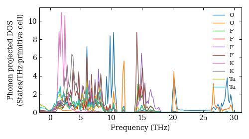 Dataset: Ab-initio phonon calculation for K2Ta2(OF2)3 / Pnma (62) / materials id 6651
