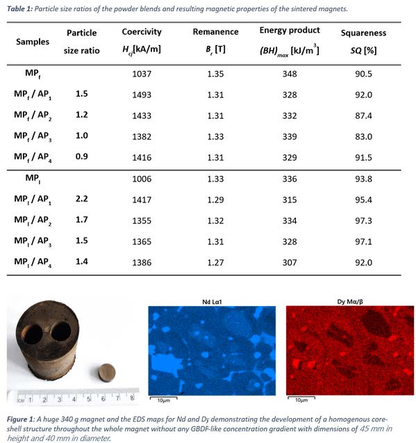 Dataset: Enabling the production of large HRE lean magnets with homogeneous microstructure - the particle size effect in the 2-powder method and core-shell development in large magnets