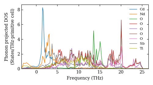 Dataset: Ab-initio phonon calculation for NdTiCdSbO7 / P4_122 (91) / materials id 39419